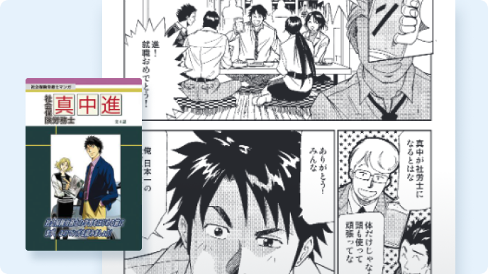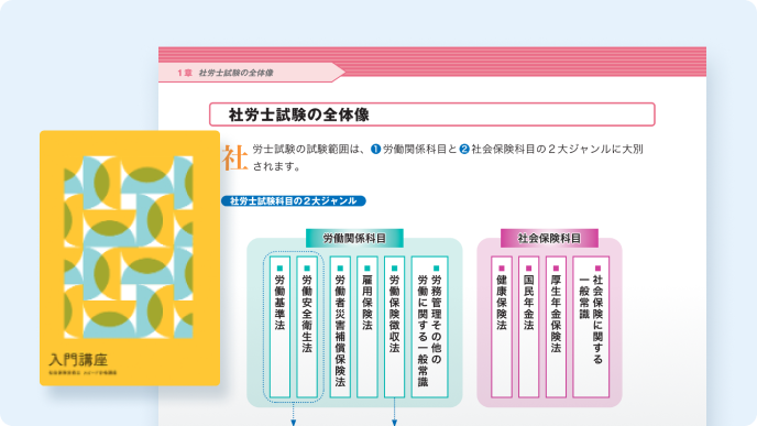 「入門講座」では社労士試験の各科目ごとに「どんなことを勉強すれば良いか」の全体像を確認し資格マンガ「真中進」で社労士のイメージを掴むことができます。