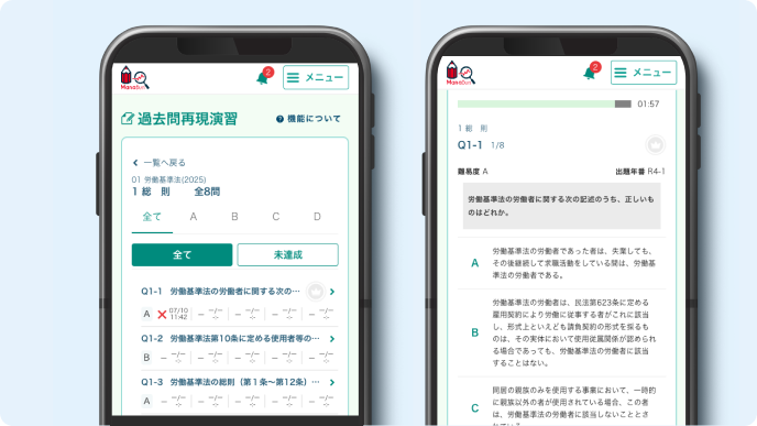 通勤・通学、休憩・家事中のスキマ時間にスマホ1台で学習が可能。講義動画のインプットから問題演習のアウトプットまで合格に必要な全てが揃っています。