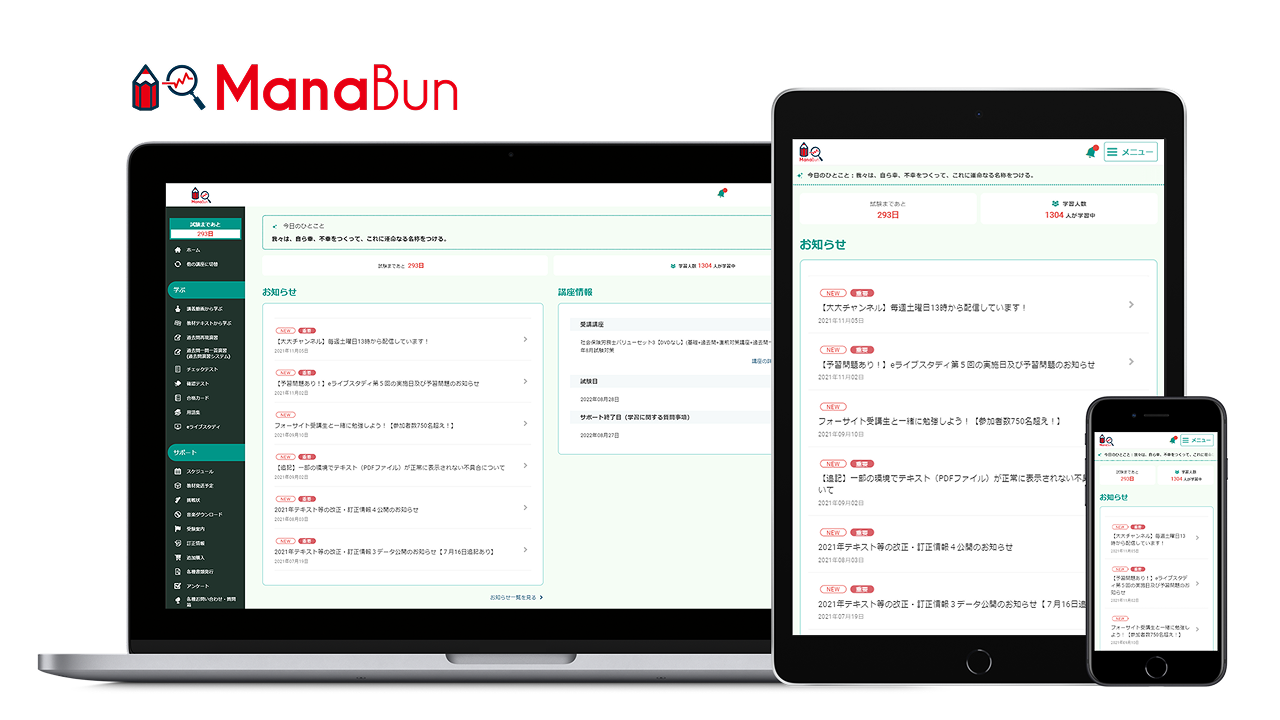 「ManaBun®(マナブン)」に必要な情報を入力していただくだけで、あなたにピッタリの試験までの学習プランを提案します。