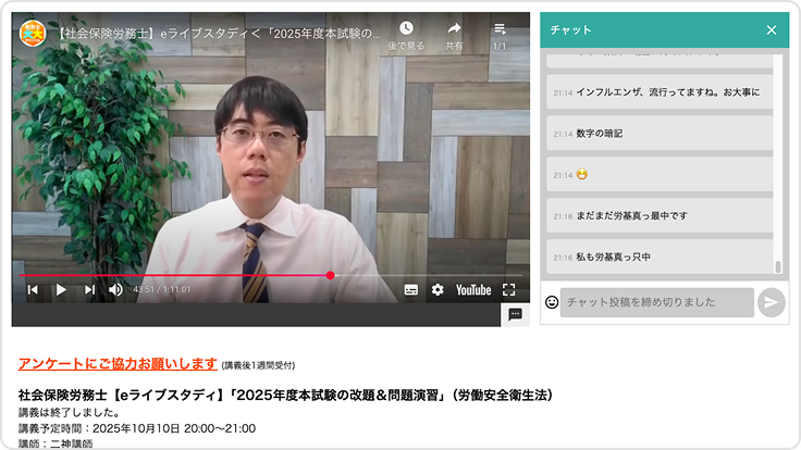 「eライブスタディ」は、定期的に行われるライブ配信講義で、講師や他の受講生とコミュニケーションを取りながら一緒に勉強できるから、やる気が増します。