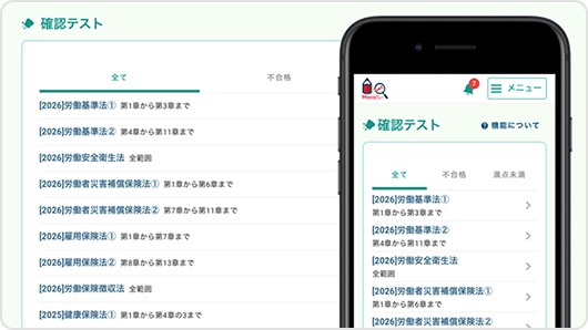 テキストの各章の学習が終わったタイミングで取り組むテストです。各問題に3回以上正解するとメダルが表示されるため、知識の理解度を把握できます。
