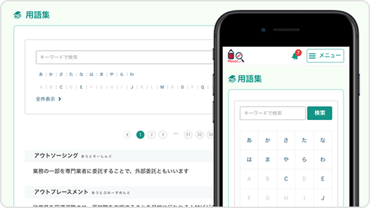 テキストで使用されている単語や用語をまとめたものです。テキストで分からない用語が出てきたら、用語集から検索すると確認することができます。
