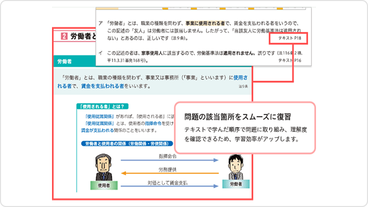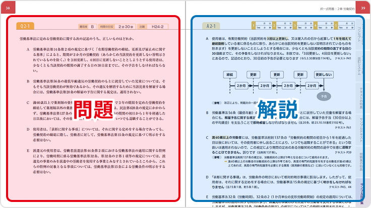 各問題の解説には、テキストの該当ページが記載されているのですぐに、スムーズにテキストでの復習に取り組めます。